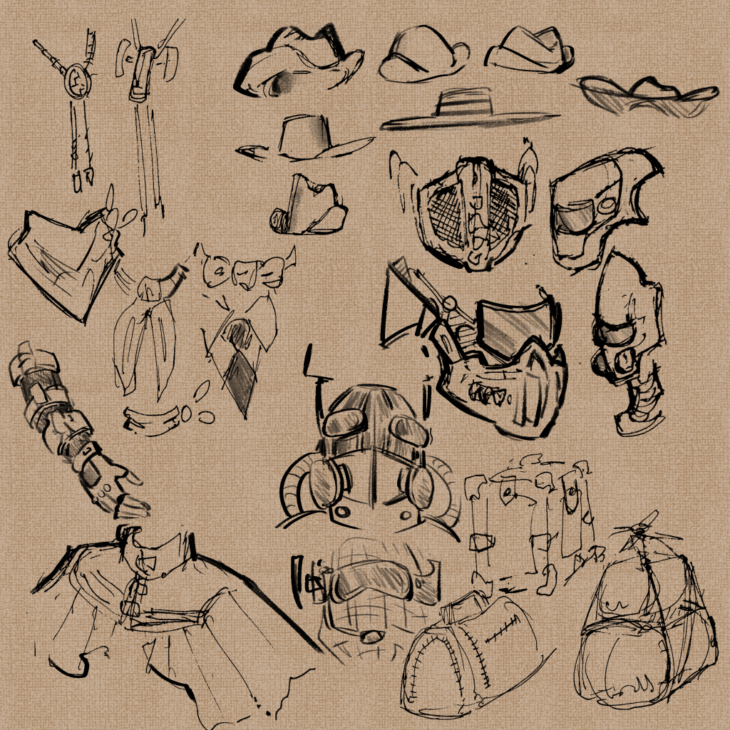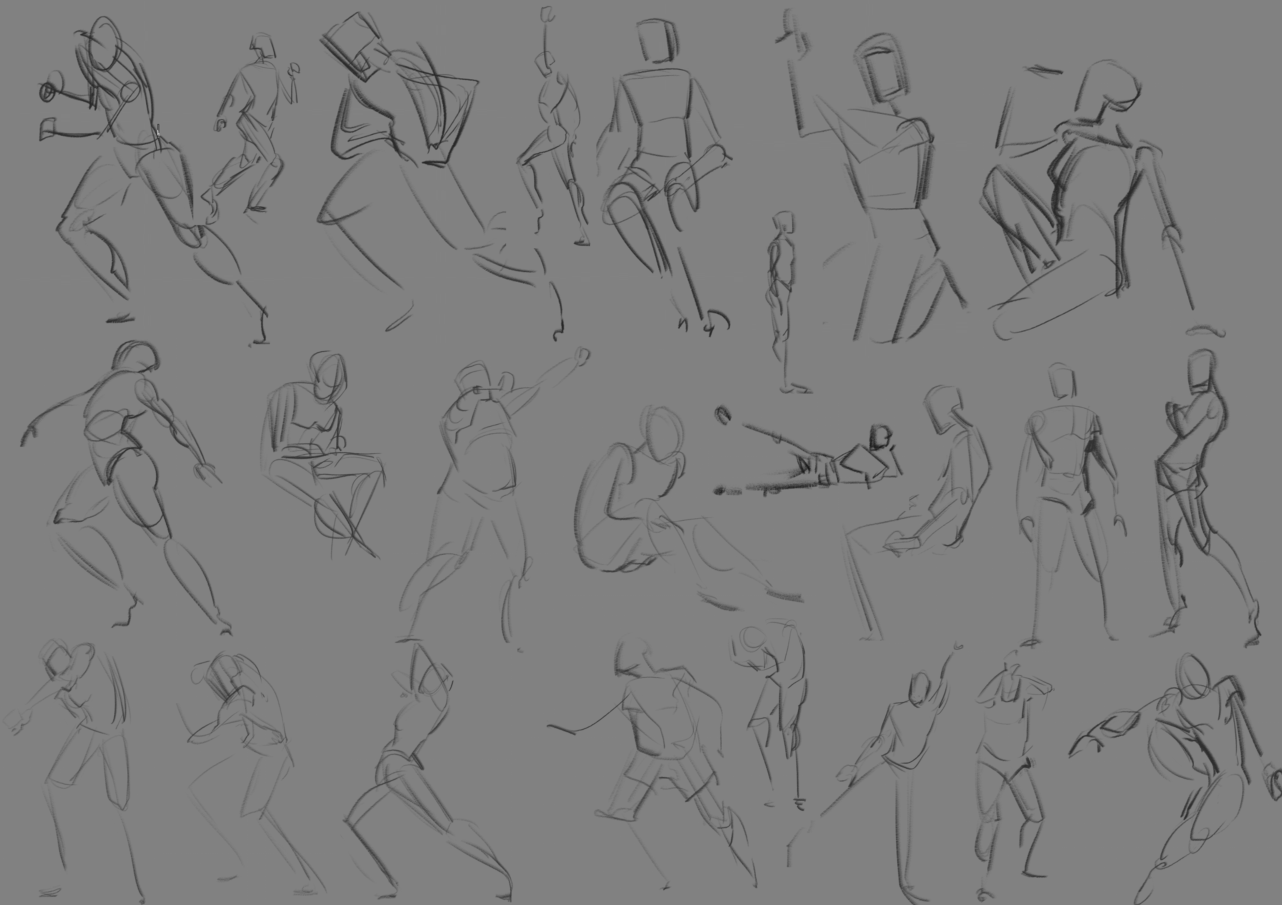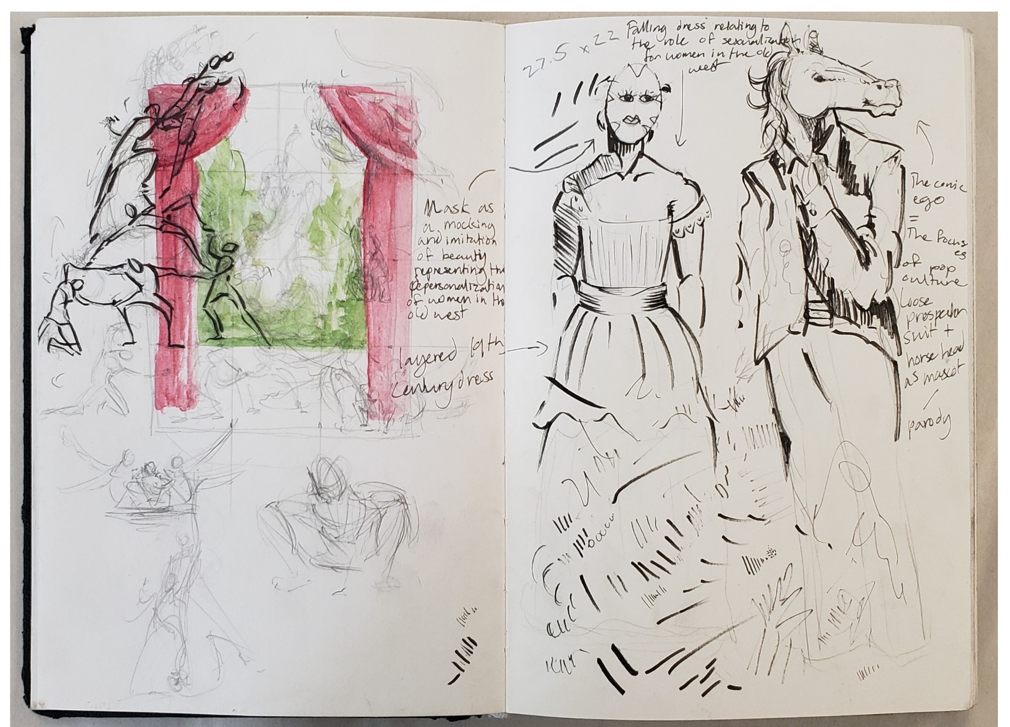 Various sketchbook pages featuring thumbnails, ideation, and studies.