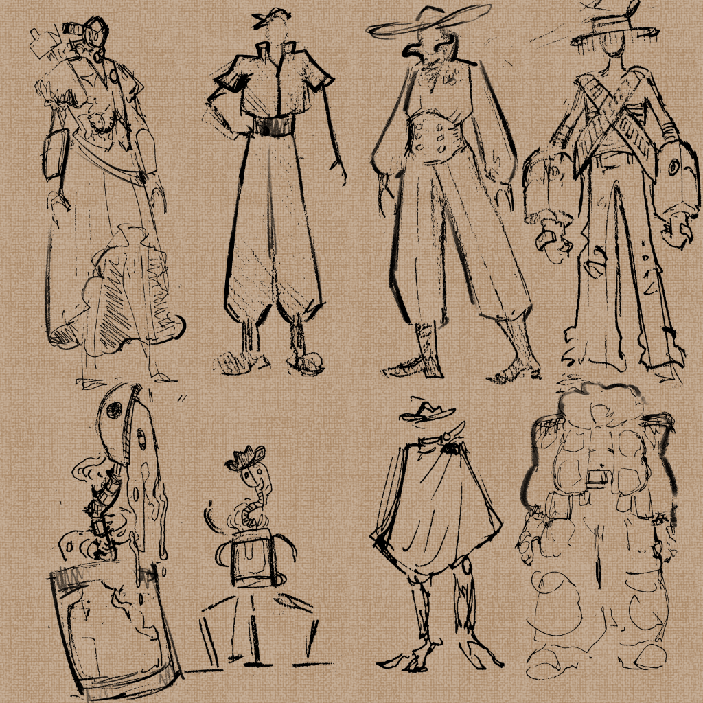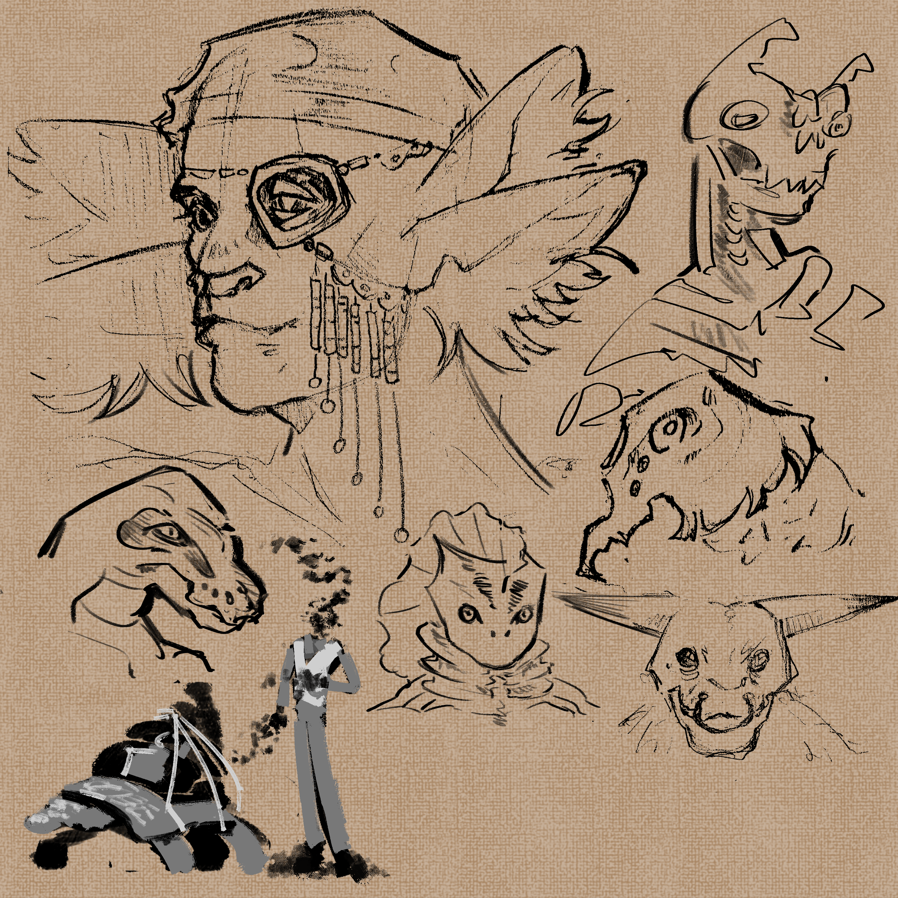 Concept art created for principle characters in the space RPG Deity Cell, an upcoming project developed by Brava Games. 2024.