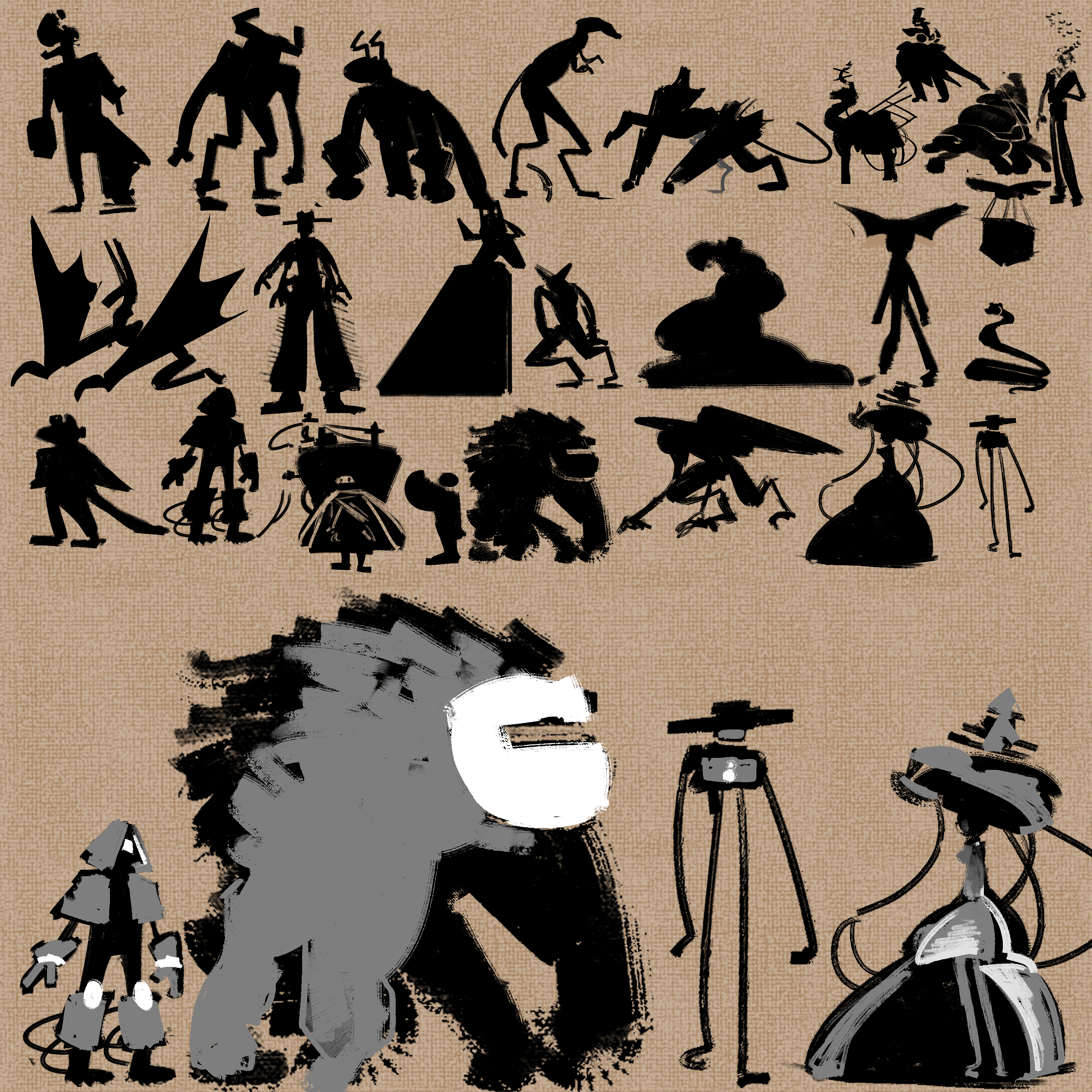 Studies of dragons focusing on shape, emphasis, and clarity of design.